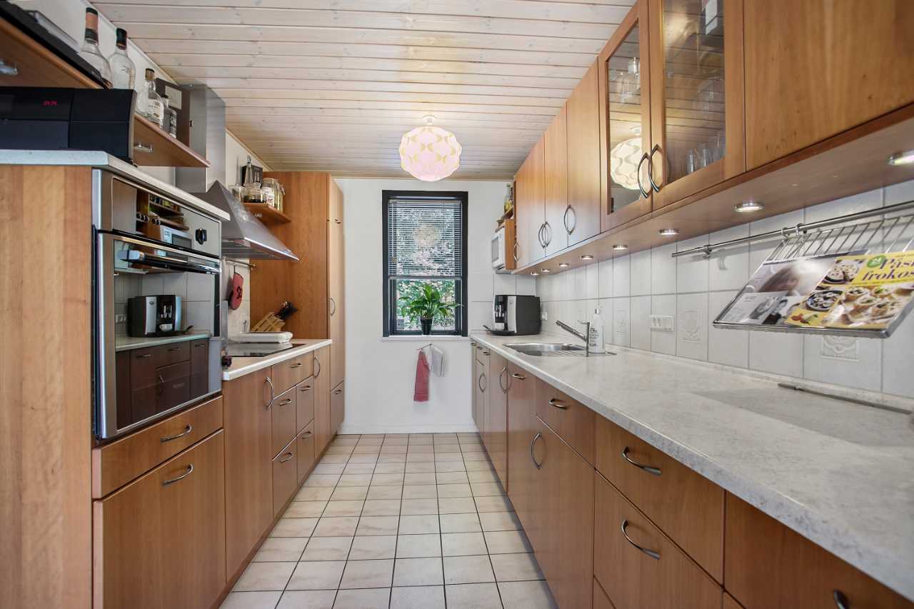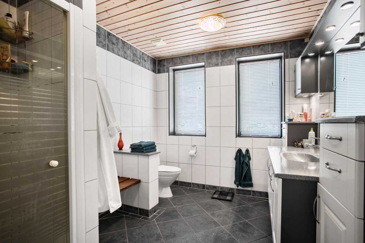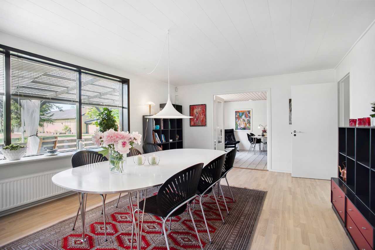 Boligen er indrettet med forgang og gæstetoilet med gulvvarme, dejlig stor vinkelstue på 40 kvm. med stor vinduesparti mod haven, flot køkken/alrum med nyere køkkenelementer i kirsebær og nyere hårde hvidevarer. Fra køkken er der udgang til stor overdækket terrasse. Flot nyere baggang med gulvvarme og mange skabe, dejligt nyere badeværelse med bruseniche og gulvvarme, soveværelse med udgang til overdækket terrasse, stort værelse (oprindelig 2 værelser), kontor, værelse samt værelse med stor hems.