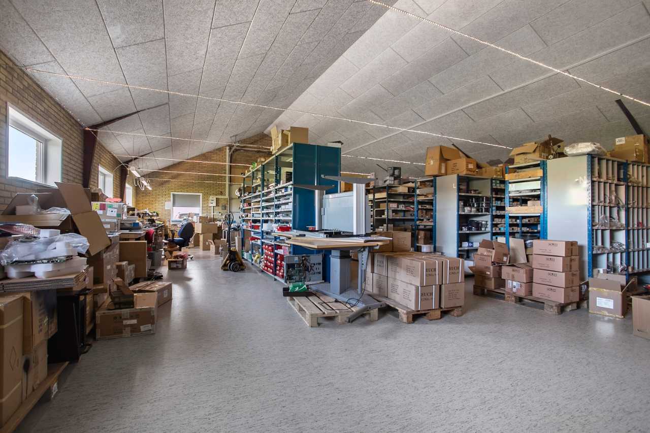 Dejlig stor og rummelig bolig bygget i 1972 der løbende er moderniseret og som fremtræder i særdeles flot og meget velholdt stand. Alle termovinduer er 3-lags glas eller energiruder. Der er ca. 180 kvm. dejlig bolig samt 420 kvm. bygninger indrettet med dejligt stort udstillingslokale, værksted, lager, personalerum m.v. Heraf bl.a. dejlig stor isoleret stålbuehal med støbt bund. Der er indlagt fiberforbindelse fra STOFA og tyverialarm med opkobling til alarmcentral.
